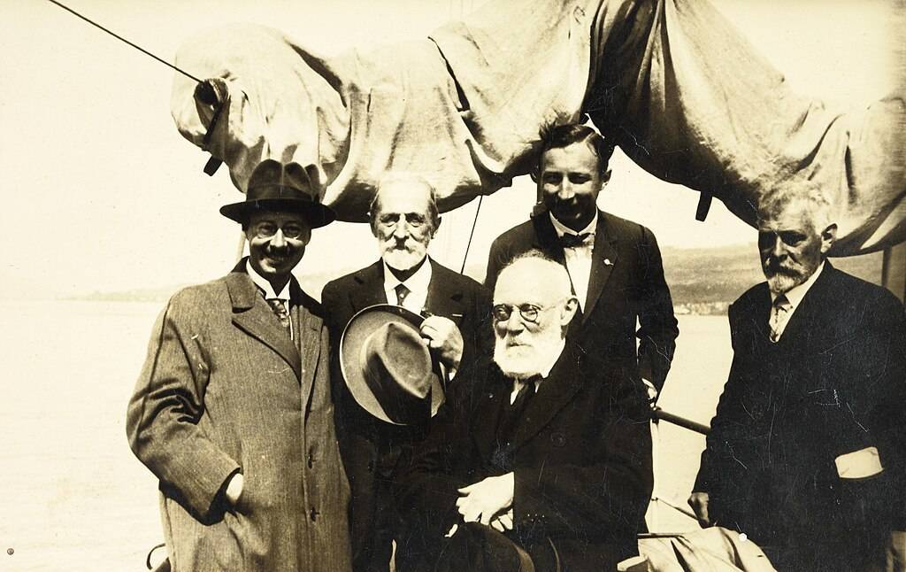 保罗·奥特莱(中)于 1930 年在苏黎世书目学会议上。(图片起首:Mundaneum / Wikimedia Commons)